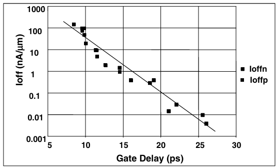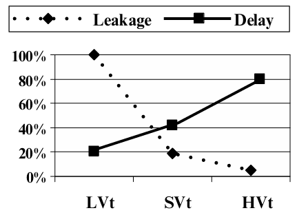 여러 임계 전압(VT) 트랜지스터를 사용하면 누설 전류를 줄일 수 있습니다: