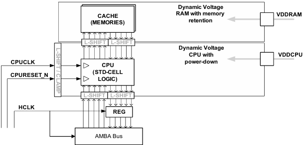 DVFS는 일반적으로 CPU 서브시스템에 적용됩니다. CPU와 캐시는 데이터 보존 및 인터페이스의 안정성을 위해 파티셔닝됩니다. 두 가지 설계가 있습니다: