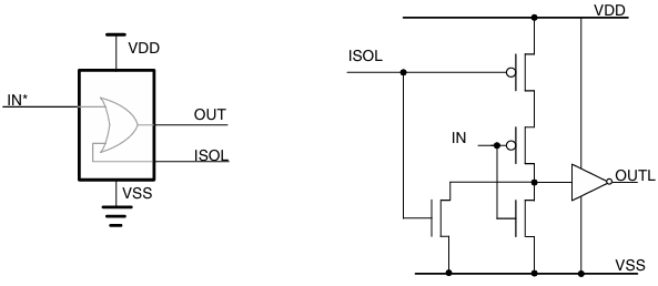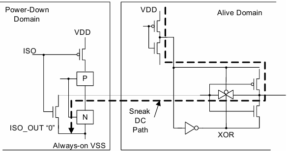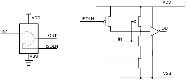 아이솔레이션 셀은 전력 도메인이 전원이 꺼질 때 플로팅 입력 및 크로우바 전류를 방지합니다.