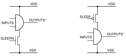 - 직렬 트랜지스터의 "stack-effect"를 활용하여 누설 전력 최소화.