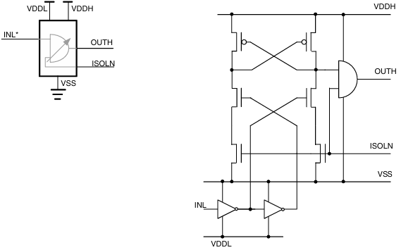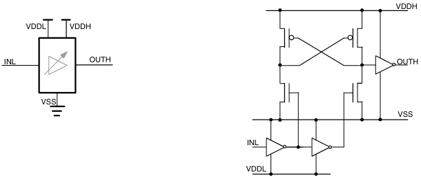 - Low-to-High Shifter (저->고 전압 시프터): 고전압 도메인 입력을 위해 특수 설계된 회로 필요.