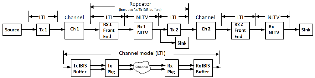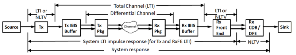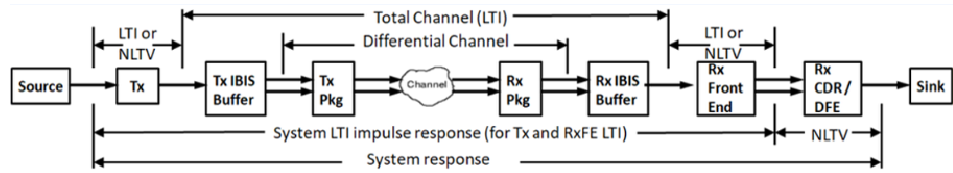 - Tx -> 패키지 -> 채널 -> Rx 패키지 -> Rx -> CDR/DFE -> Sink의 흐름으로 신호가 전송됨.