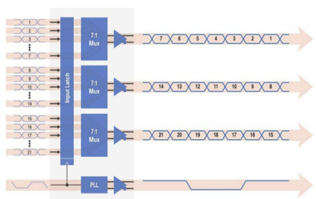 이 방식은 주로 PCI, UTOPIA, 프로세서 버스, 제어 버스 등과 같은 넓은 병렬 데이터 버스를 직렬화할 때 사용됩니다.