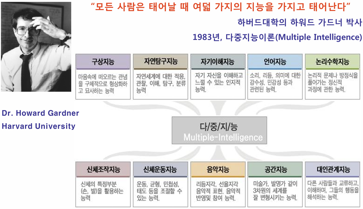 - 대뇌의 영역과 연결된 8가지 다중지능: