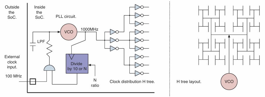 CPU 코어에서 요구되는 1GHz 수준의 높은 클럭 주파수를 생성하기 위해서는 칩 내부에서 크리스털 오실레이터 주파수를 승수(multiply)하여 사용해야 한다. 이를 위해 위상 고정 루프(PLL, Phase-Locked Loop)가 사용된다.