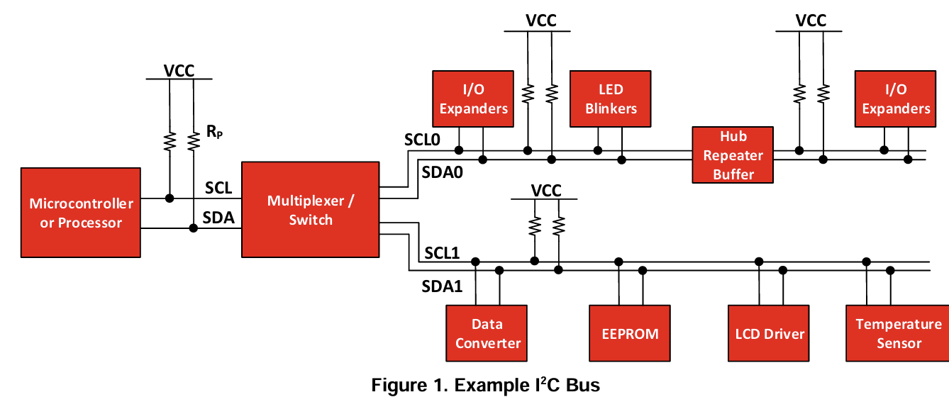 "I2C는 각 슬레이브가 고유한 주소(I2C Address)를 가지므로, 하나의 SDA/SCL 버스에 여러 개의 슬레이브를 병렬 연결할 수 있습니다.