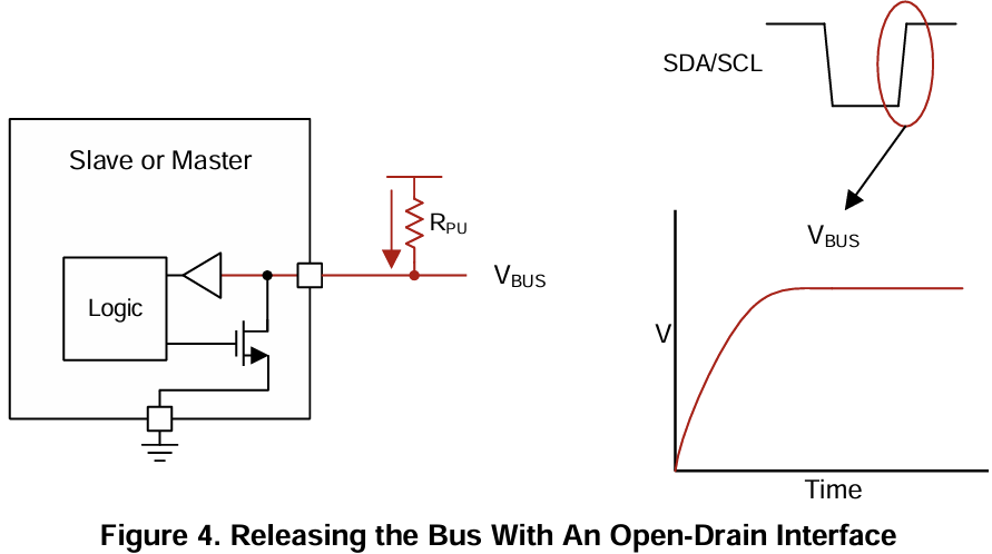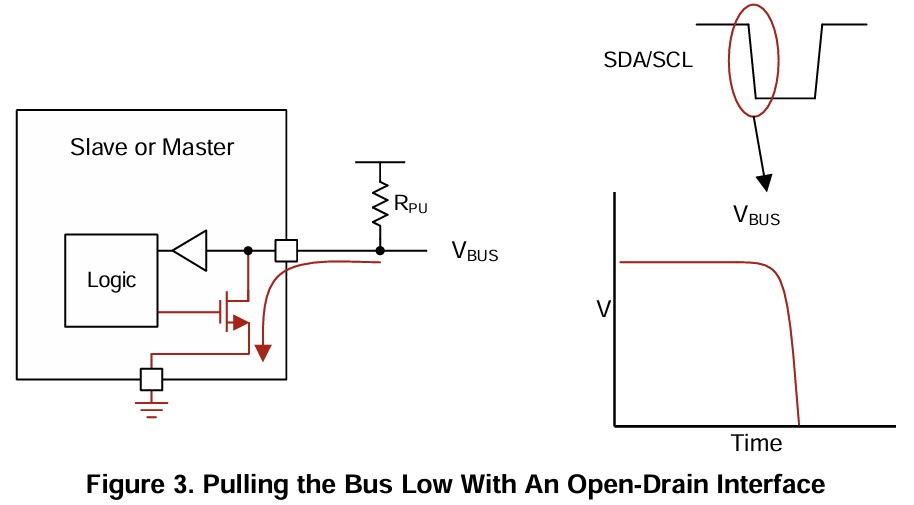✔ MCU와 I2C 장치 간에는 데이터 송수신이 Open-Drain 방식으로 이루어진다.