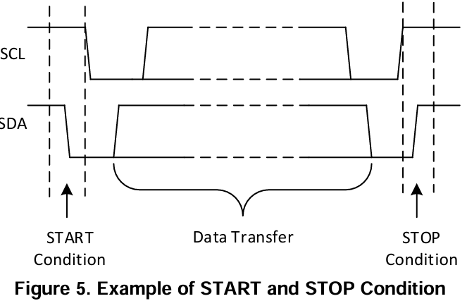 - Start Condition: SCL이 HIGH일 때 SDA를 LOW로 변경 → 데이터 전송 시작