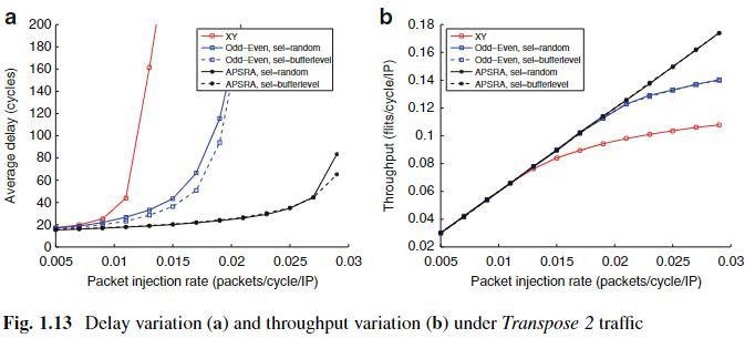 일반적으로, average delay와 average throughput은 packet injection rate에 따른 그래프로 나타낸다. 예시는 Fig. 1.13에 나와 있다.