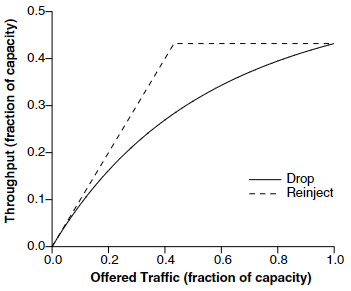 Figure 2.10은 injection rate에 따른 throughput을 보여준다.