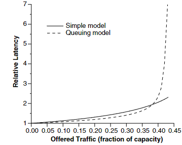 - throughput이 0.39일 때 latency는 2배가 된다.
