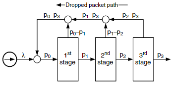 네트워크의 각 stage i에서 다음 stage의 출력률 pᵢ₊₁은 다음과 같다: