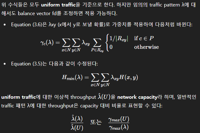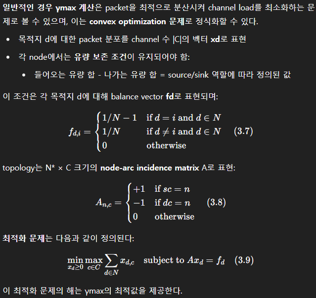 이 절에서는 모든 channel bandwidth가 동일하게 b일 때의 throughput 및 부하 공식만을 다룬다 (Ex.3.5에서는 이 제한을 해제한다).