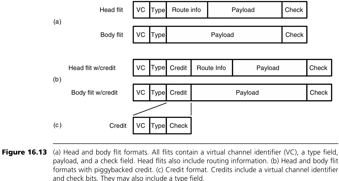 Figure 16.13에서 각 flit은 다음 필드를 포함한다: