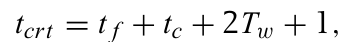 token이 credit 루프를 완전히 한 바퀴 돌아야만 buffer를 재사용할 수 있기 때문에, flit buffer 수가 tcrtt_{crt}보다 적으면 첫 번째 credit이 돌아오기 전에 buffer가 모두 소진된다. credit 루프 지연 시간은 flit 시간 단위로 다음과 같이 정의된다.