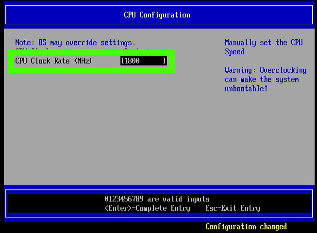 - CPU 클럭을 선택하고 Enter를 눌러 기본값에서 사용자 지정으로 변경하세요. 옵션 목록에는 매력적인 최대 옵션이 제공됩니다. 하지만 CPU를 최대로 올리기 전에 작은 오버클록으로 테스트하는 것이 좋습니다.