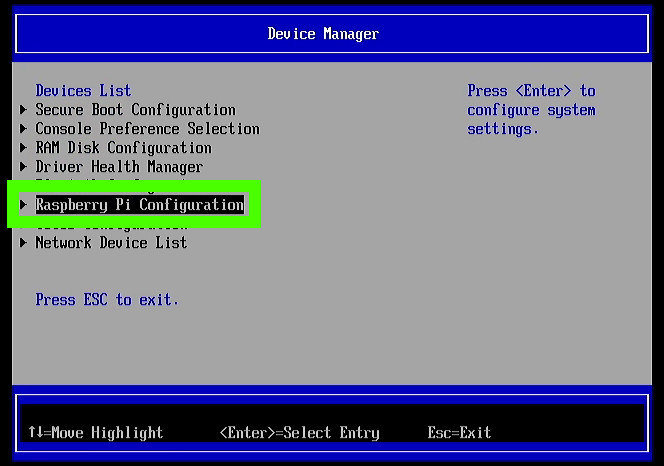 - F10을 눌러 구성을 저장한 다음, ESC를 눌러 Raspberry Pi 구성 메뉴로 돌아가세요.