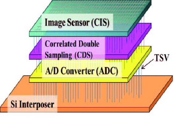 - Through-Silicon Via (TSV) 기술: TSV 기술은 다층 CMOS 이미지 센서를 구현하는 데 일반적으로 사용됩니다. 이 기술은 각 CMOS 칩을 수직으로 적층하고, 각 층 사이에 전기적 연결을 제공하기 위해 실리콘 웨이퍼를 통해 작은 구멍을 만드는 것을 포함합니다. 이를 통해 각 층의 이미지 센서가 서로 통신하고 데이터를 전송할 수 있습니다.
