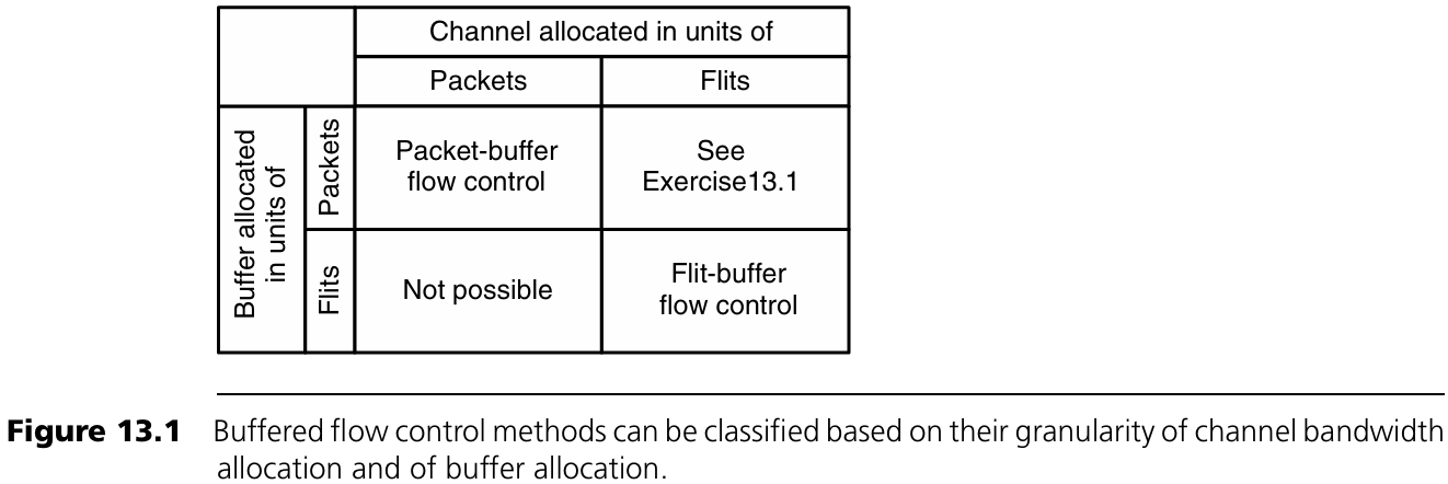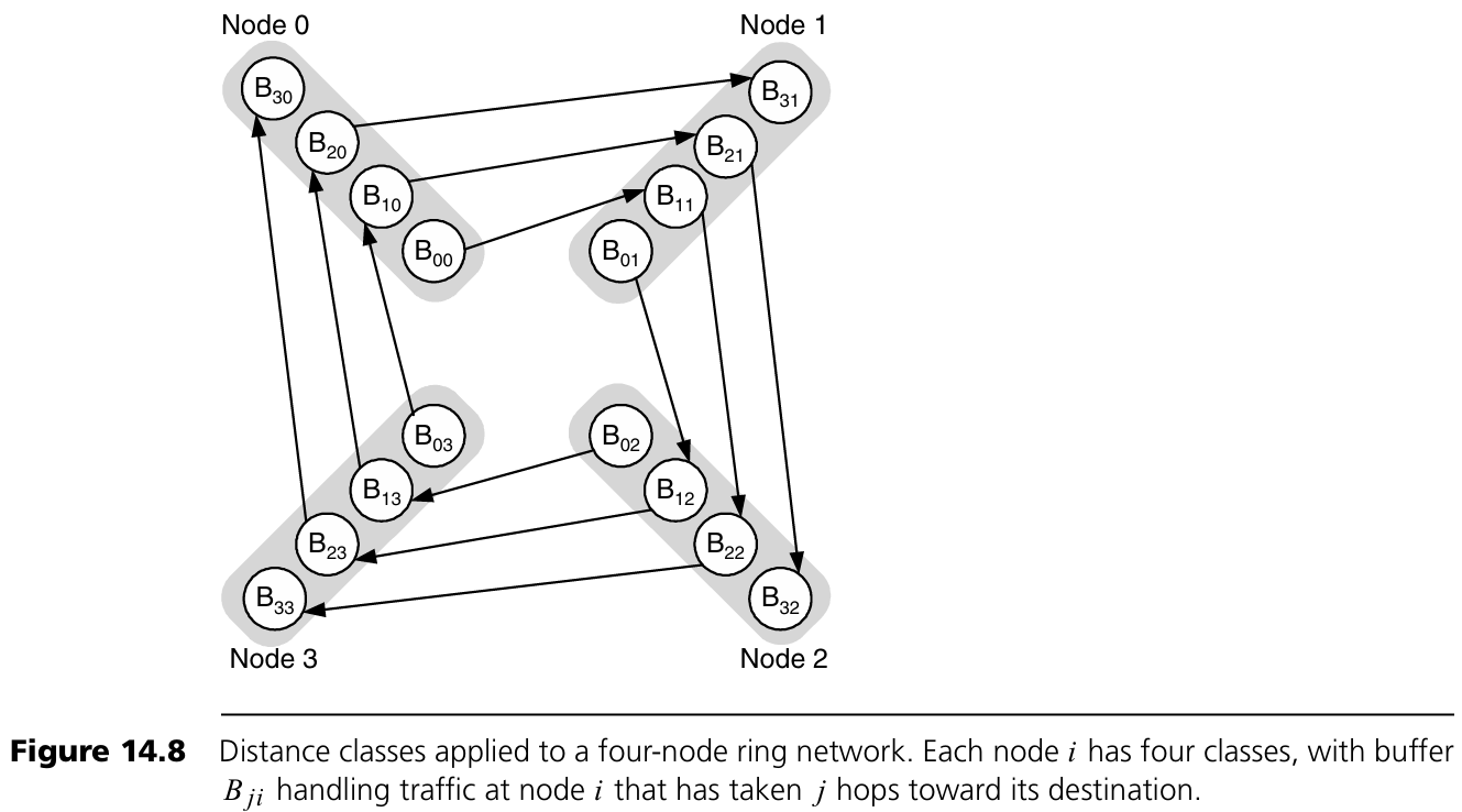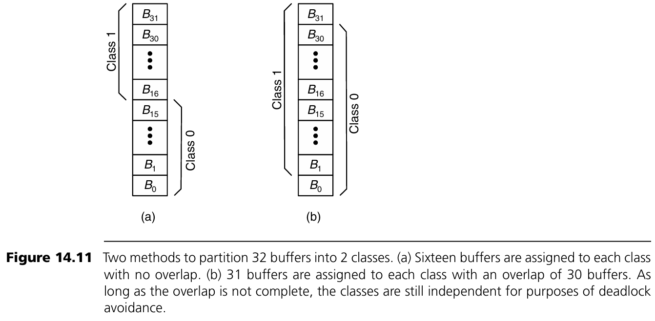 일부 interconnection network에서는 트래픽을 여러 클래스로 나누어 자원 할당을 좀 더 효율적으로 관리한다. 클래스마다 요구사항이 다르다. 어떤 클래스는 latency에 민감하고, 어떤 클래스는 latency에는 둔감하지만 jitter는 허용하지 않는다. 어떤 클래스는 packet loss를 허용할 수 있고, 어떤 클래스는 전혀 허용하지 않는다. 또한 중요도도 다르기 때문에, 생명 유지 시스템에 필요한 packet은 오락 시스템의 오디오 packet보다 우선순위가 높다.