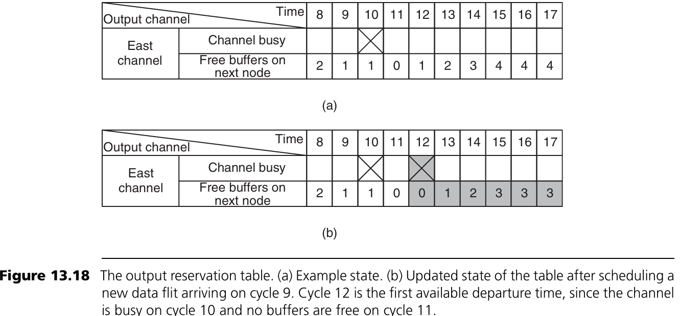 TDM 같은 예약 기반 기법에서는 자원 예약 정보를 저장하는 table이 필요하며, 그에 따른 비용이 든다. 반면, 자원이 동적으로 할당되는 경우에는 상황이 훨씬 복잡해진다. 이상적으로는 global하게 자원을 스케줄링하여 서로 영향을 주지 않도록 해야 하지만, interconnection network는 분산 시스템이기 때문에 global approach는 현실적이지 않다. 대신 fair queueing, age-based arbitration 같은 local 알고리즘을 사용하여 자원을 분배하고, 하드웨어 수준에서의 class 간 자원 분리가 필요하다.