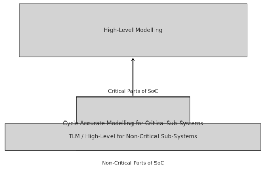 - High-Level: High-level models are designed with a high degree of abstraction, allowing for the quick simulation of system behavior. They are used mainly in the early stages of design to understand the big picture of the system or evaluate different architectural choices. The specific hardware implementation or cycle accuracy may be omitted or simplified, making these models useful for verifying system behavior and software interaction quickly. For example, SystemC's TLM (Transaction Level Modeling) abstracts data flow and functional behavior, representing a high-level approach.