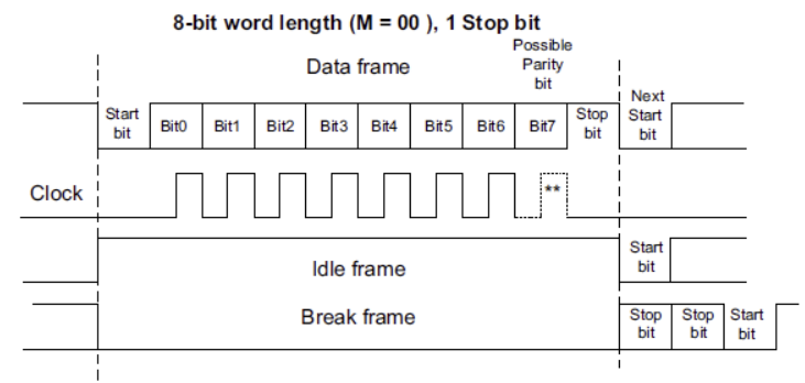 UART는 데이터를 송수신할 때 프레임 단위로 전송하며, 한 프레임의 구조는 다음과 같다.