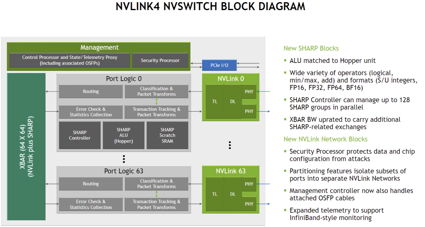 - 총 128개의 NVLink4 포트를 제공