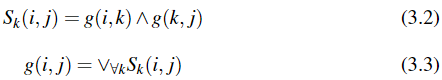 - 12–18행에서는 **transitive-closure TT**를 계산한다. 이때 Tk[i][j]T^k[i][j]는 다음 중 하나일 경우에 True가 된다: